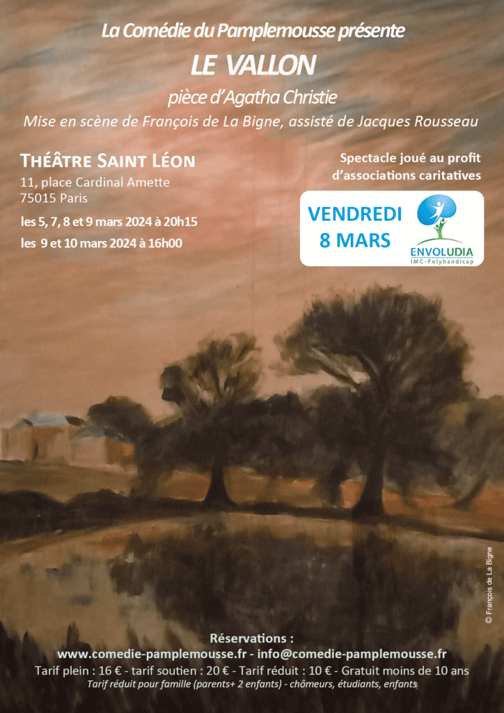 La Comédie du Pamplemousse jouera une pièce d’Agatha Christie, « Le Vallon », sur la scène du Théâtre Saint-Léon dans le 15e à Paris, au profit d’associations caritatives.